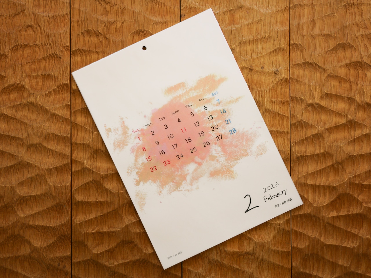 付属のフック画鋲で壁に掛けてご使用いただく壁掛けタイプのカレンダーです。
