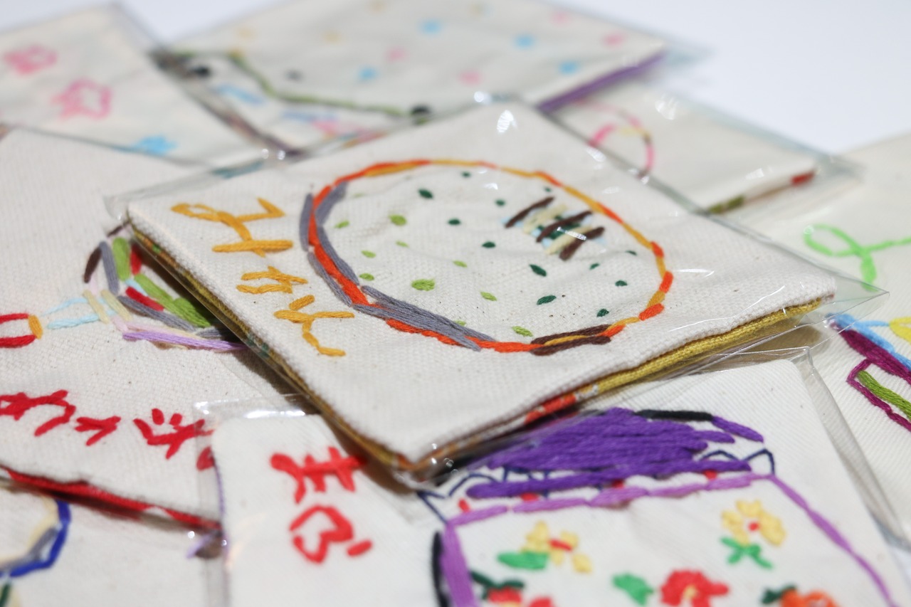 2人が作り出すコースターはカラフルでモチーフも可愛いらしく、はじまりの美術館ショップでも人気の商品です。