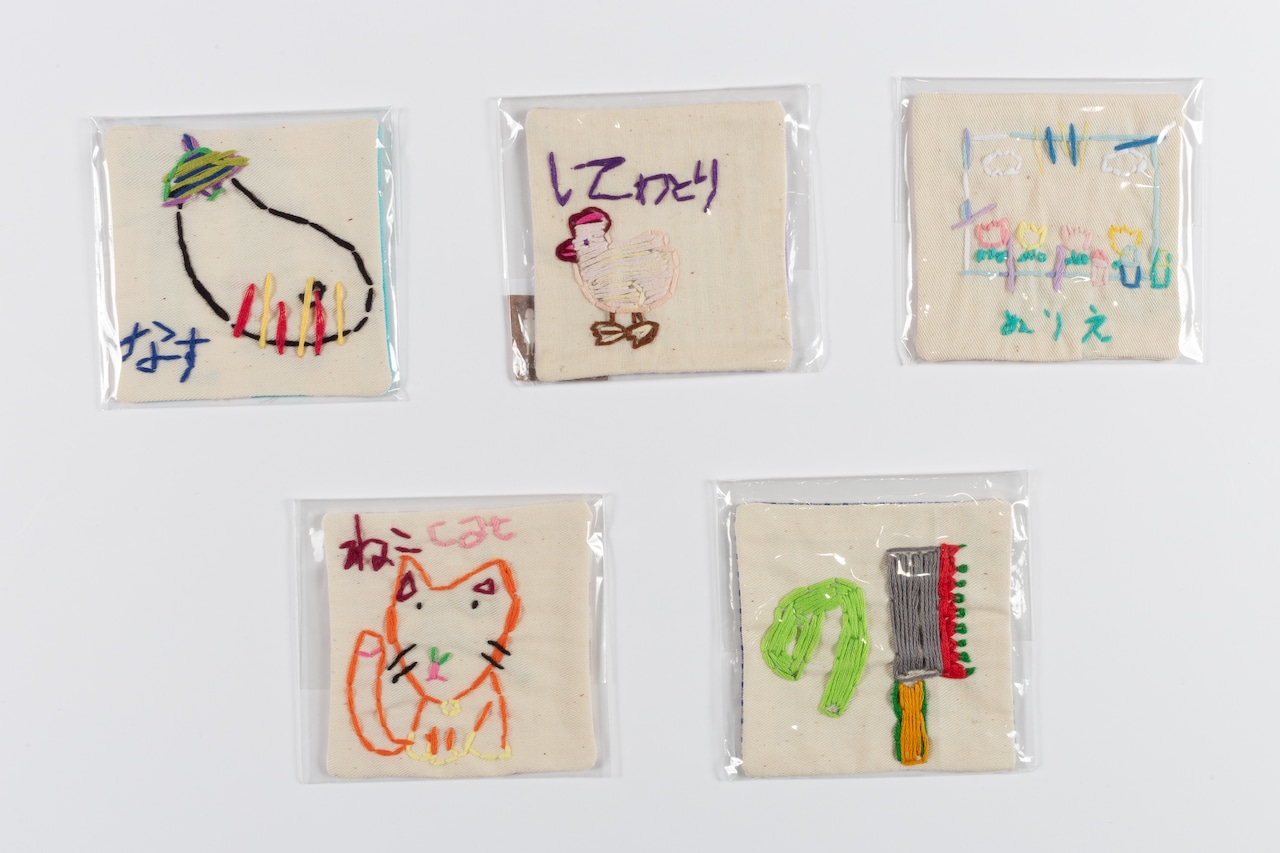橋本さんが下絵を描き、藤井さんが刺繍を施す。